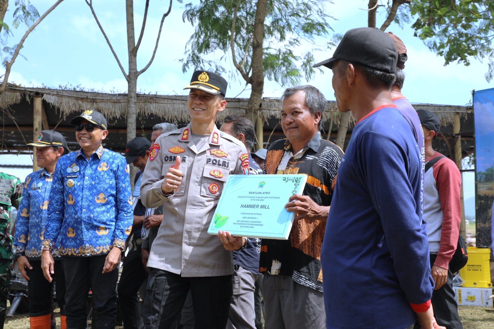 Saat dilokasi Wakapolresta Malang Kota AKBP Oskar Syamsuddin juga menyerahkan beberapa bantuan dari Dispangtan Kota Malang untuk mengoptimalkan pertanian.