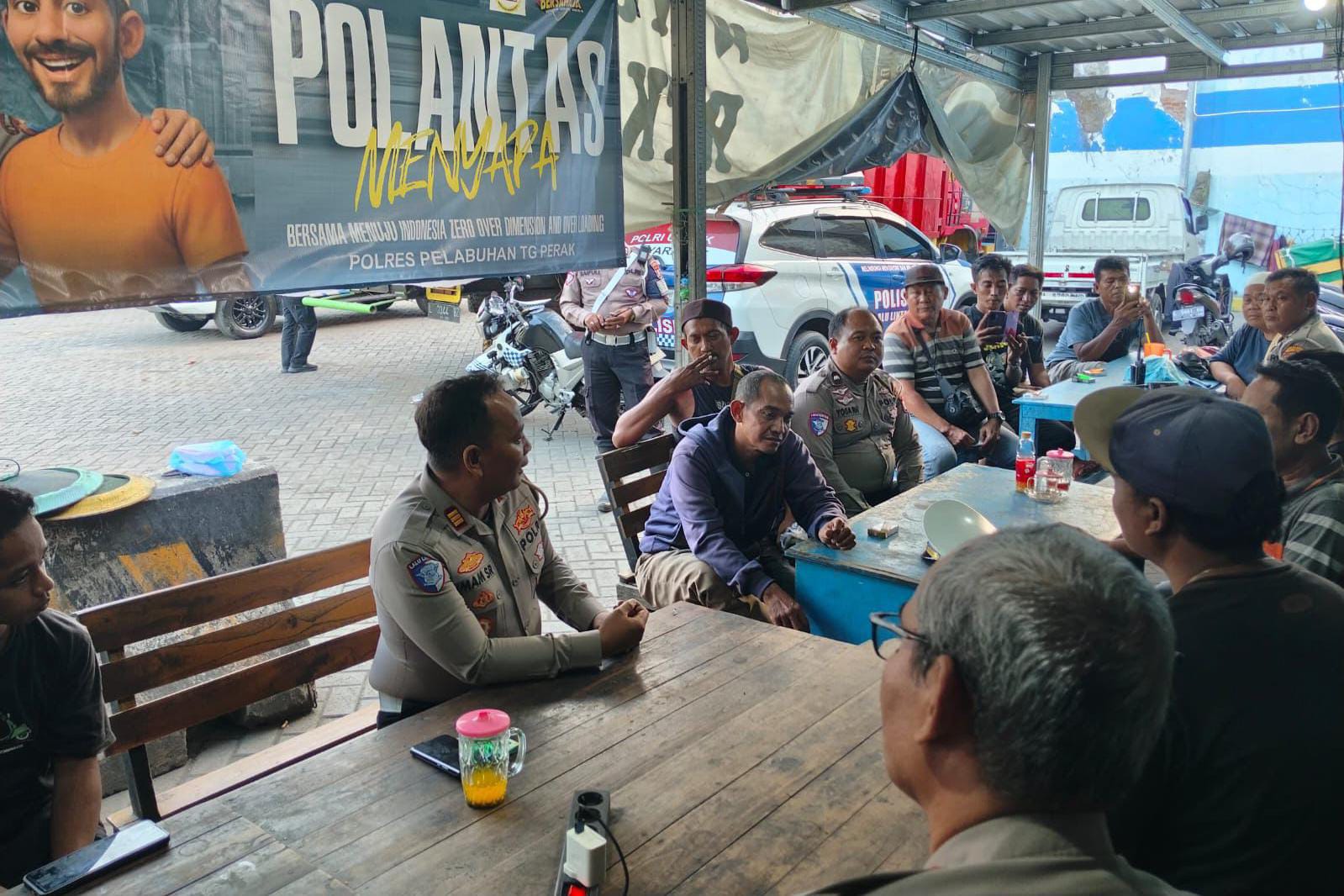 Belasan pengemudi truk ekspedisi berkumpul bukan untuk sekadar melepas lelah, melainkan untuk cangkruk ngopi bareng bersama jajaran Satlantas Polres Pelabuhan Tanjungperak Polda Jatim.