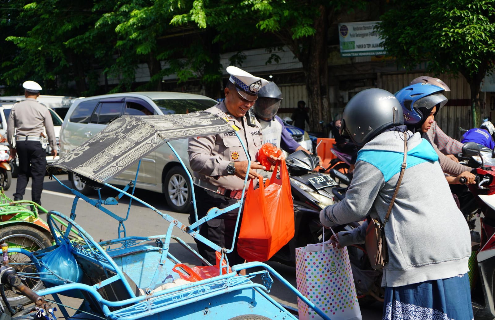 Kegiatan dimulai sejak pagi sekira jam 08.00 WIB, di mana anggota Satlantas Probolinggo Kota membagikan nasi bungkus secara langsung kepada warga.