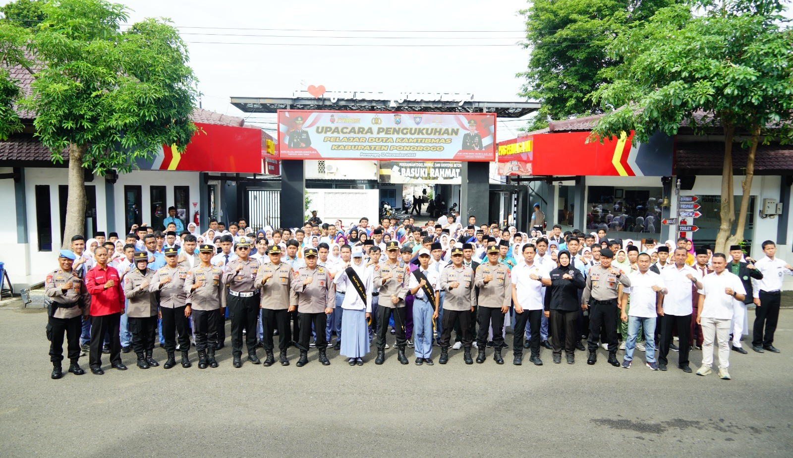 Pengukuhan tersebut dilaksanakan di halaman Mapolres Ponorogo dengan menggelar Upacara Pengukuhan Pelajar Duta Kamtibmas, Rabu (12/11/2025).
