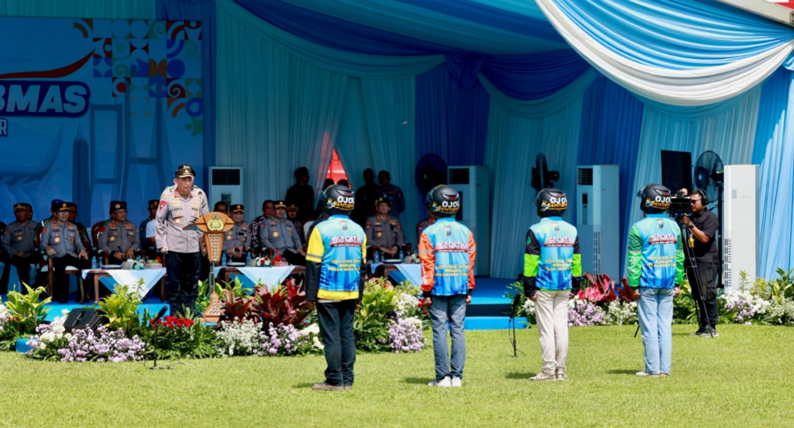 Ribuan peserta tampak memenuhi lapangan apel dengan seragam khas aplikator masing-masing, menampilkan semangat kebersamaan dan komitmen tinggi untuk mendukung terciptanya situasi kamtibmas yang aman dan kondusif.