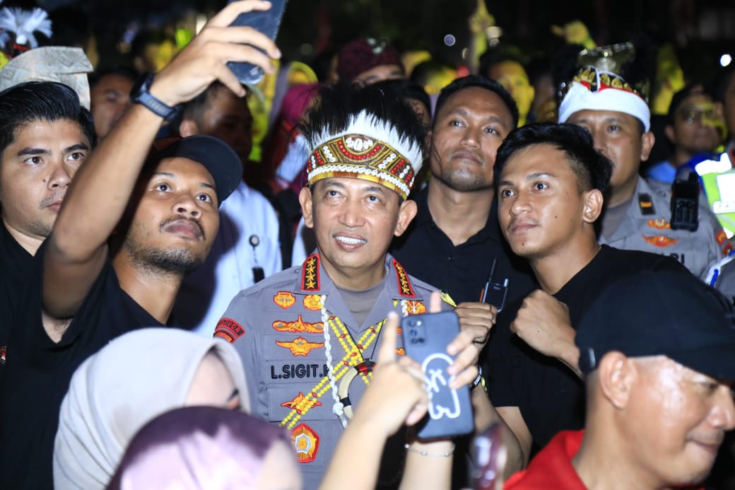 Kapolri Jenderal Listyo Sigit Prabowo hadir langsung di lokasi untuk meninjau jalannya kegiatan dan memastikan seluruh rangkaian berlangsung aman dan tertib. Didampingi Menteri Sekretaris Negara Prasetyo Hadi, Kapolri berkeliling menyapa warga, berdialog dengan peserta karnaval, serta menyaksikan penampilan di panggung rakyat yang menjadi daya tarik utama malam itu.