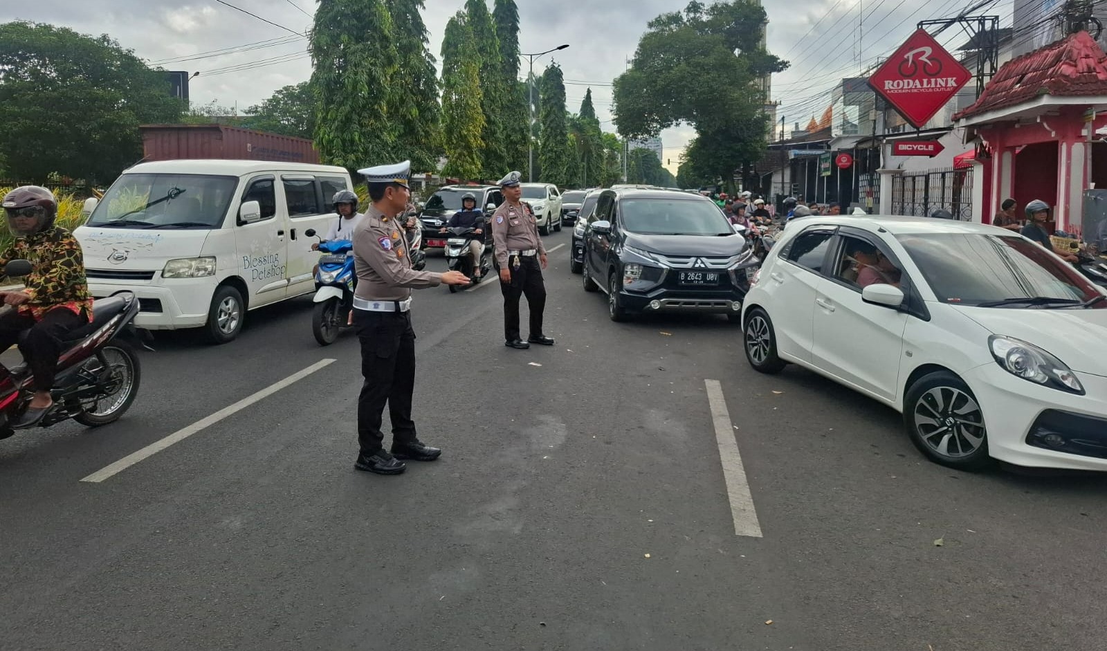 Meski padat, lalu lintas tetap bisa jalan pelan-pelan dan tertib berkat pengaturan dari petugas.