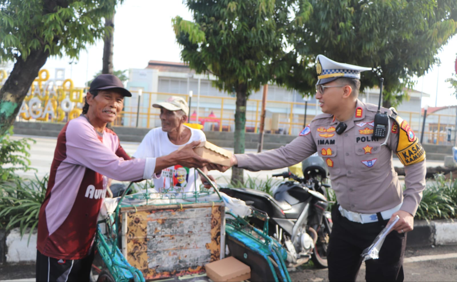Operasi Keselamatan Semeru di Jumat Berkah Polres Tuban Ajak Masyarakat Tertib Lalin Dengan Berbagi Nasi Kotak