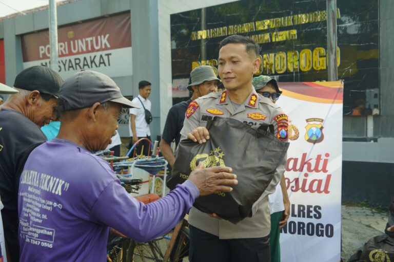 Polres Ponorogo Gelar Baksos, 250 Paket Sembako Dibagikan Untuk Tukang Becak