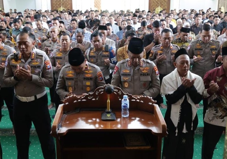 SURABAYA – Wujud kepedulian terhadap sesama, Polda Jatim menggelar Shalat Ghaib dan doa bersama untuk para korban bencana alam banjir bandang dan tanah longsor yang melanda Aceh, Sumatra Utara, dan Sumatra Barat, di Masjid Arif Nurul Huda Mapolda Jatim, Jumat (5/12/2025).