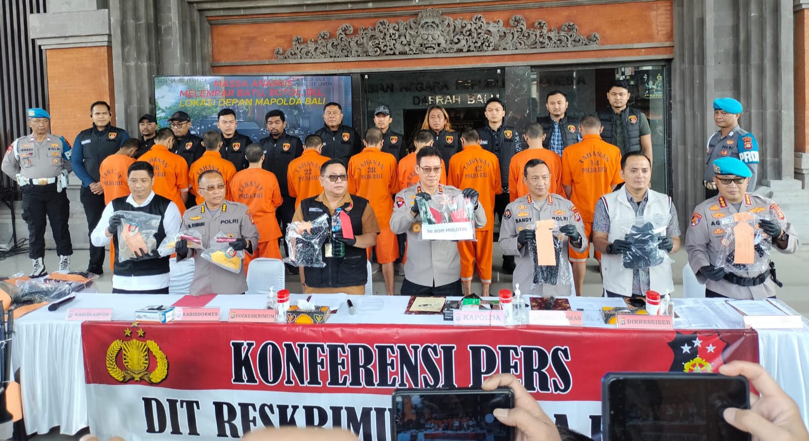 DENPASAR – Kepolisian Daerah (Polda) Bali menetapkan 14 orang tersangka dalam kasus unjuk rasa yang berujung anarki di depan Mapolda Bali dan kantor DPRD Provinsi Bali, Denpasar, pada 30 Agustus 2025.