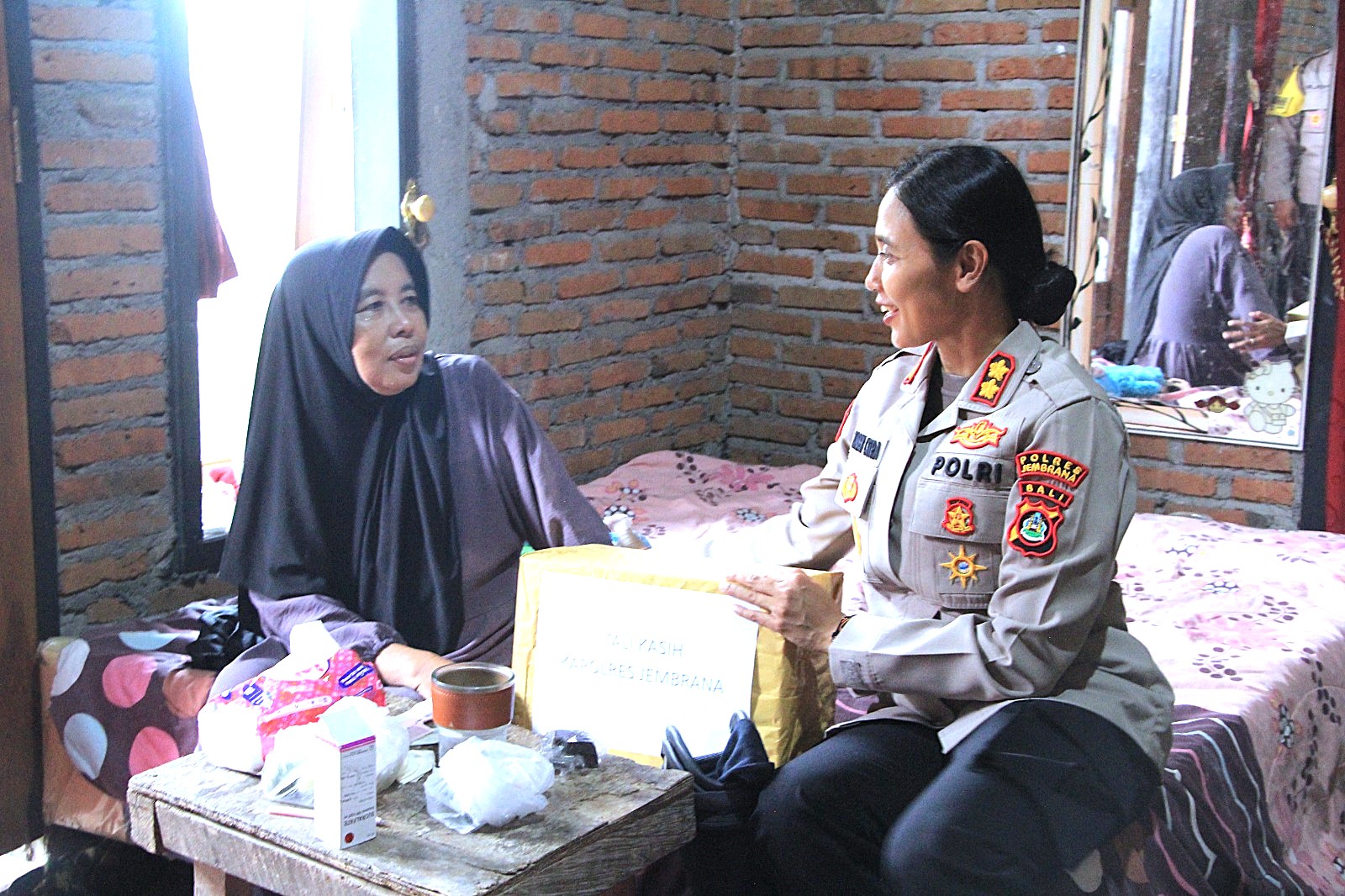 Kapolres Jembrana AKBP Kadek Citra Dewi Suparwati, S.H., S.I.K., M.I.K. turun langsung memberikan bantuan berupa bingkisan kepada warga bernama Halifah yang tengah mengalami sakit. Kegiatan ini juga dihadiri Kapolsek Kota Negara Kompol I Kadek Ardika S., S.Sos., M.H., serta Kasat Binmas Polres Jembrana AKP I Nyoman Pasar, S.H.