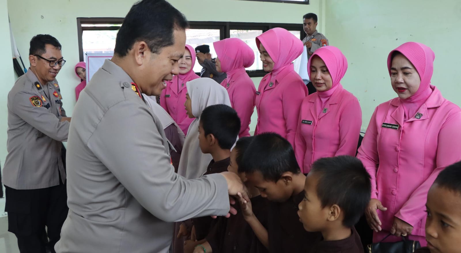 Anak-anak panti asuhan pun tampak antusias dan senang dengan kehadiran jajaran kepolisian.