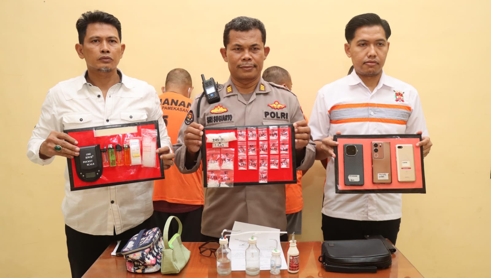 Dikatakan oleh AKP Sri Sugairto, Ketiga orang tersebut adalah seorang bandar dan dua pengedar Narkoba yang meresahkan masyarakat Pamekasan.