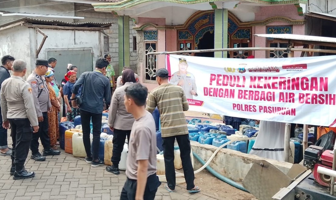 Melihat hal tersebut, Kapolres Pasuruan, AKBP Jazuli Dani Iriawan memerintahkan anggotanya untuk droping air bersih di lokasi terdampak kekeringan.