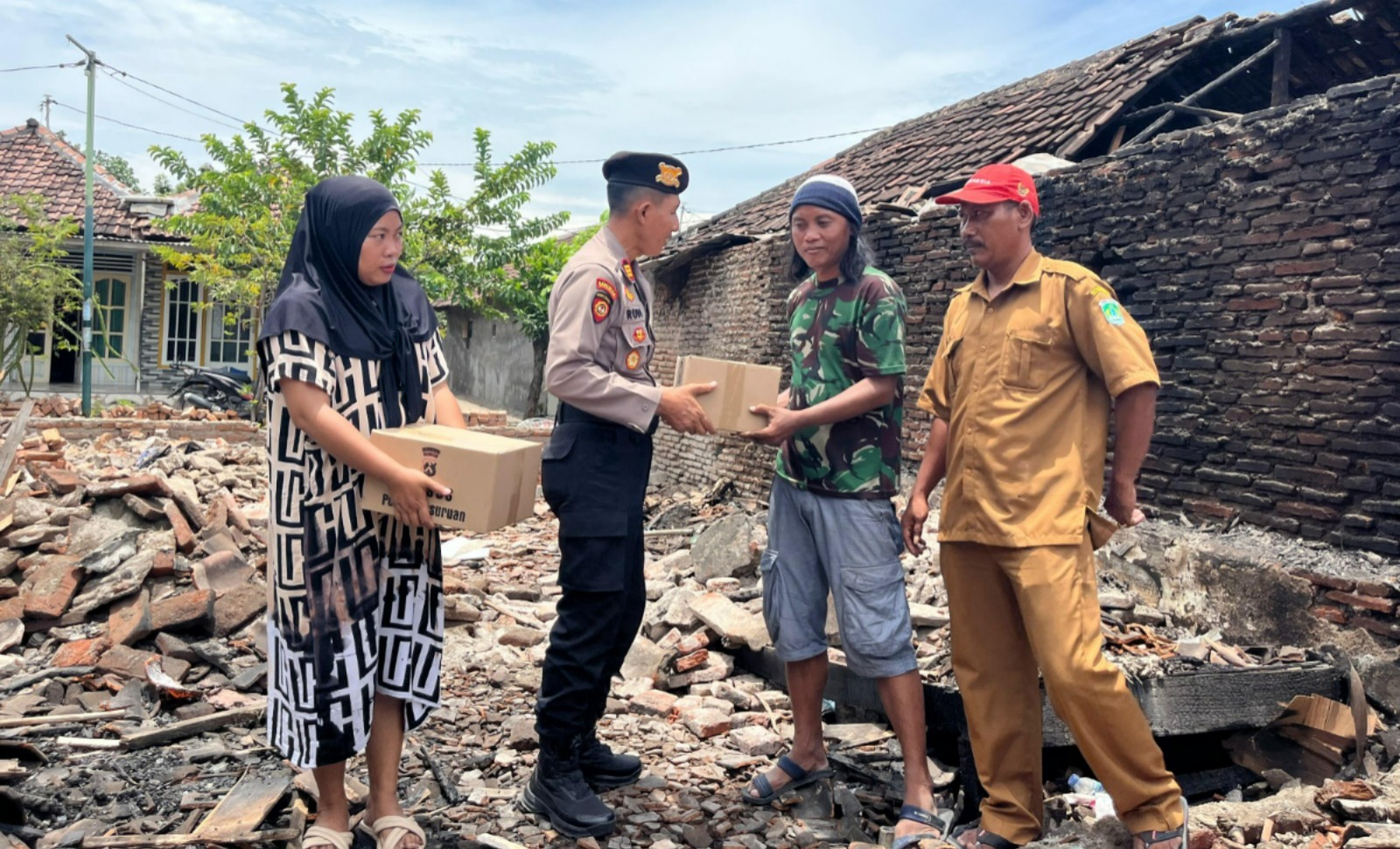 Bantuan diserahkan secara langsung oleh Kasat Samapta Polres Pasuruan AKP Rudi Santosa bersama Kapolsek Rembang AKP Mulyono kepada korban, Hari Cahyono (30), warga setempat yang rumahnya dilalap api sehari sebelumnya dan menyebabkan kerugian material sekitar Rp 25 juta.