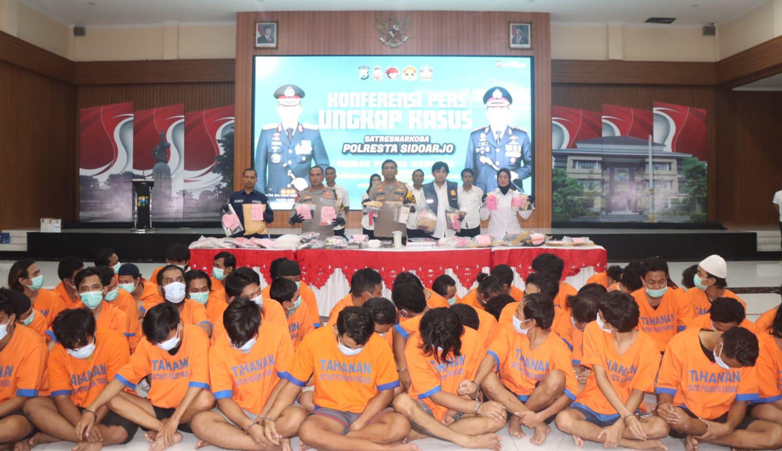 Kapolresta Sidoarjo Kombes. Pol. Christian Tobing menjelaskan dari 110 kasus tersebut terdapat 84 kasus diungkap oleh Satresnarkoba Polresta Sidoarjo, sementara 24 kasus diungkap oleh Polsek jajarannya.
