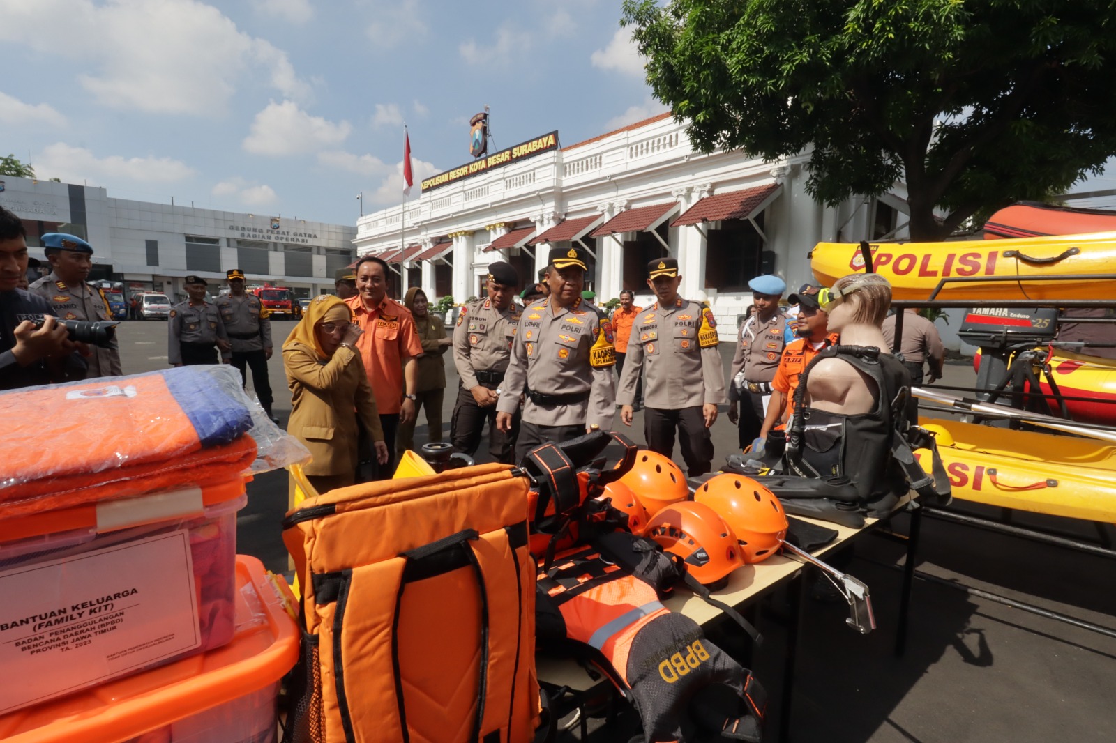 Pada kegiatan tersebut juga digelar peralatan penanggulangan bencana di Halaman Mako Polrestabes Surabaya.