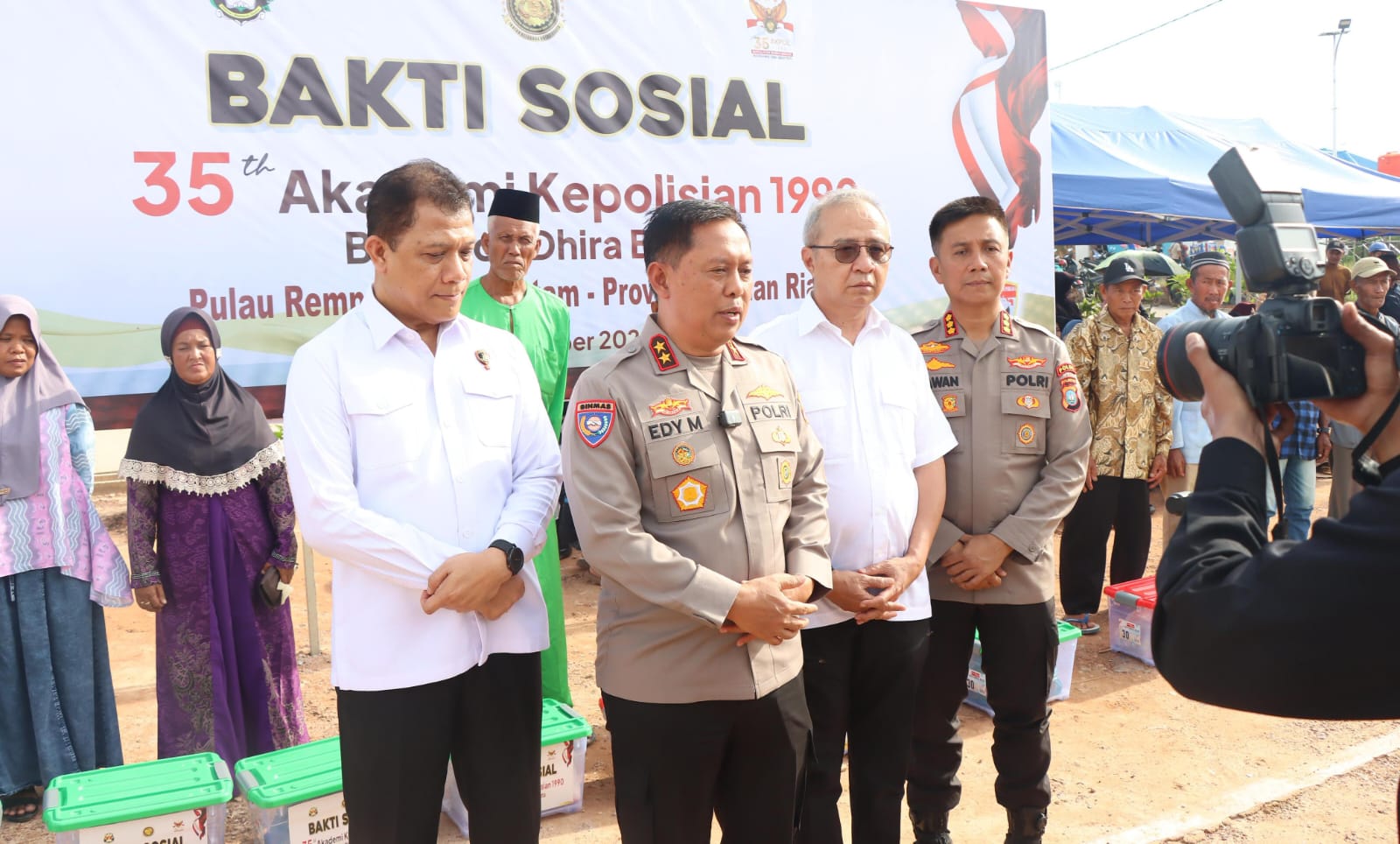 BATAM – Korps Binmas Baharkam Polri menyelenggarakan bakti sosial dalam rangka memperingati 35 Tahun Ikatan Keluarga Dhira Brata (IKDB) Alumni Akpol Angkatan 1990 di Perumahan Rempang Eco City, Kelurahan Sembulang, Kecamatan Galang, Batam. Kegiatan dengan tema “Bersama Berbagi Tak Bertepi” ini dihadiri oleh sejumlah pejabat tinggi Polri dan diterima dengan antusias oleh masyarakat setempat.