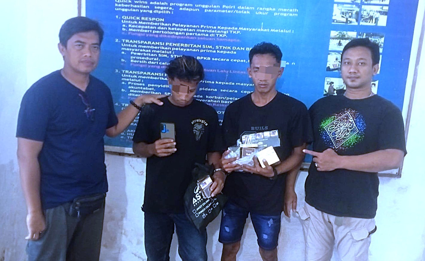 Dua orang yang diduga kuat sebagai pelaku berhasil diamankan berikut barang bukti hasil kejahatan.