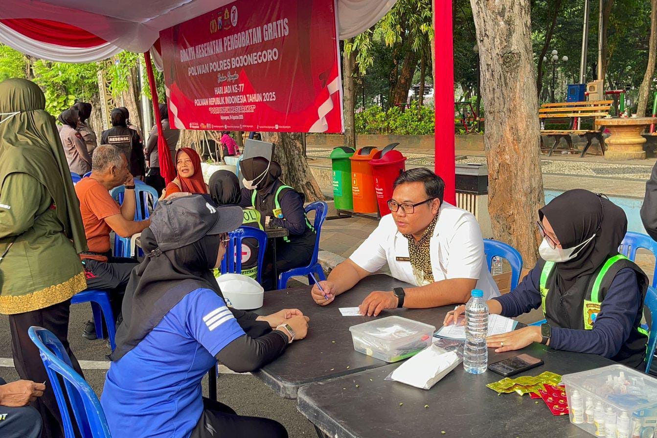 BOJONEGORO – Dalam rangka menyambut Hari Jadi Polisi Wanita (Polwan) ke-77 tahun 2025, Polisi Wanita (Polwan) Polres Bojonegoro Polda Jatim menggelar kegiatan Bakti Kesehatan yang dipusatkan di kawasan Car Free Day (CFD) Alun-Alun Kota Bojonegoro, Minggu (24/8/2025) pagi.