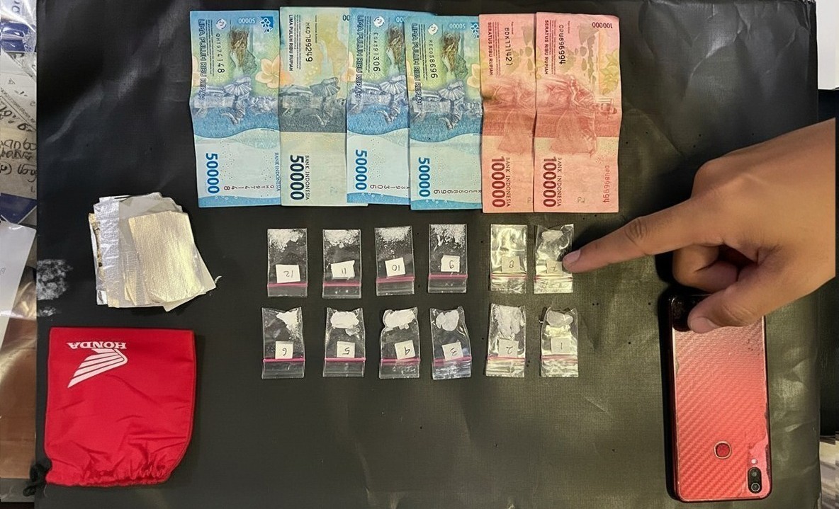 “Dari hasil penggeledahan, petugas mengamankan 12 paket sabu dengan total berat sekitar 7,865 gram, serta barang pendukung lainnya seperti plastik klip, uang tunai, dan alat komunikasi,” jelas AKP Bambang.