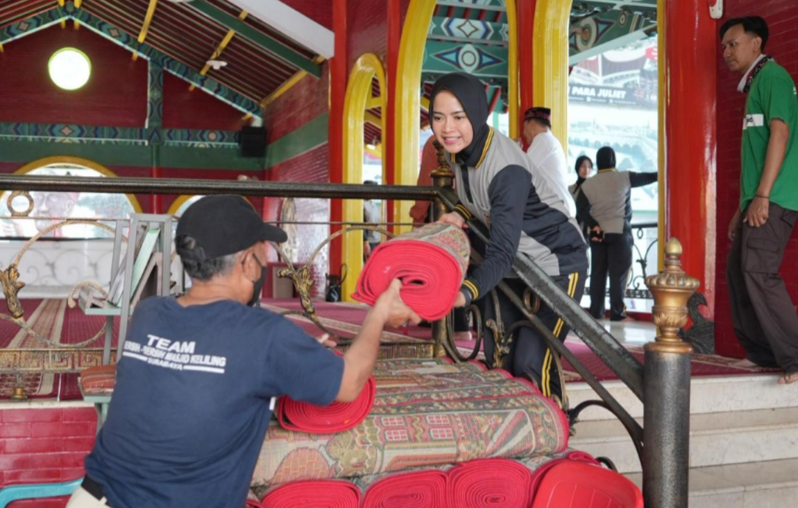 “Tujuan dari diadakannya kegiatan ini adalah untuk memupuk keimanan dan jiwa sosial dalam bentuk membersihkan area sekitaran masjid Cengho Surabaya,” ujar AKBP Yayuk.
