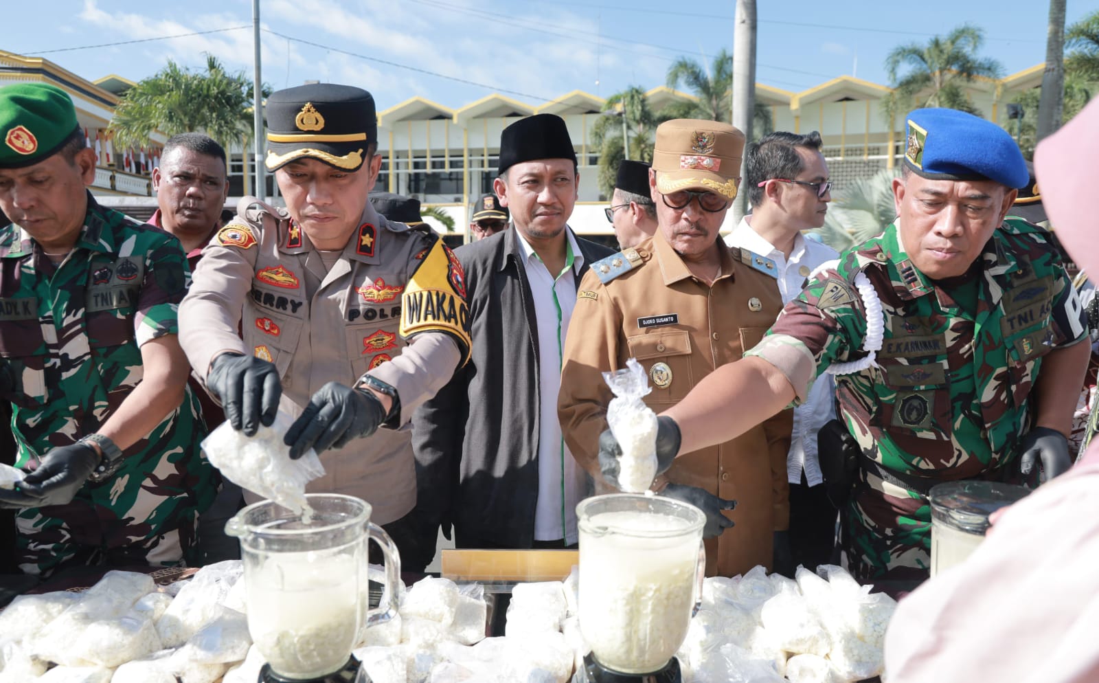 Pemusnahan barang bukti dilakukan secara simbolis oleh jajaran Forkopimda, disaksikan oleh tokoh masyarakat dan elemen terkait.