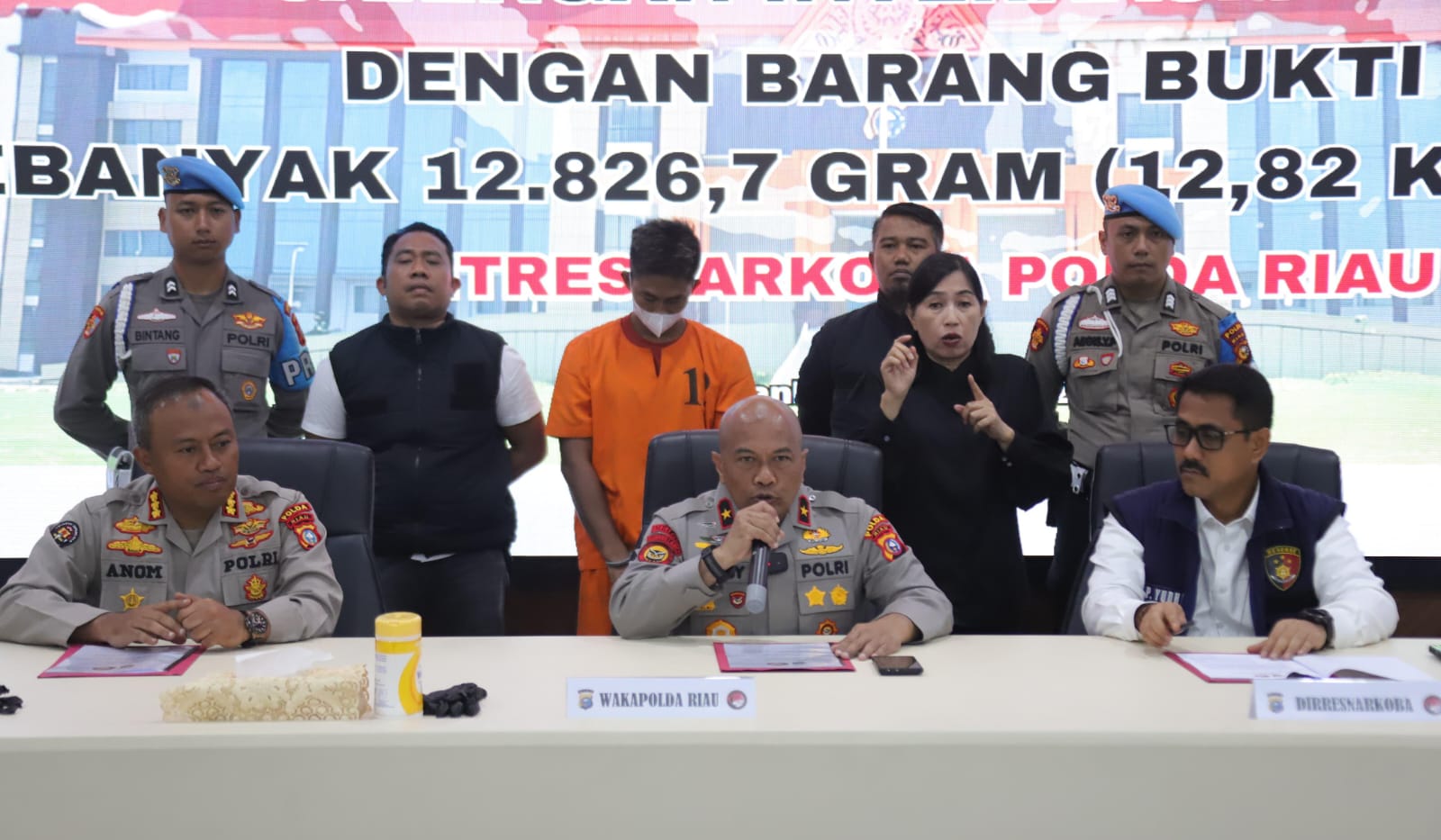 Kegiatan yang diselenggarakan di Media Center itu dihadiri oleh Wakapolda Riau Brigjen Pol. Jossy Kusumo didampingi Dir Resnarkoba Kombes Pol. Putu Yhuda Prawira, Kabid Humas Polda Riau Kombes Pol. Anom Karibianto.